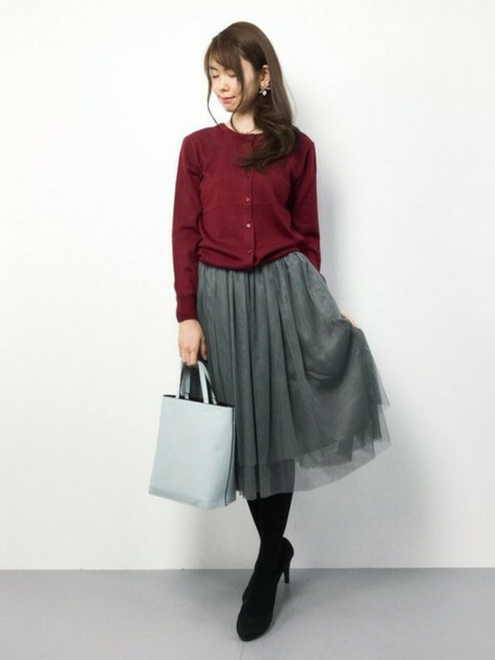 カーディガンコーデも可愛くて好きです^^