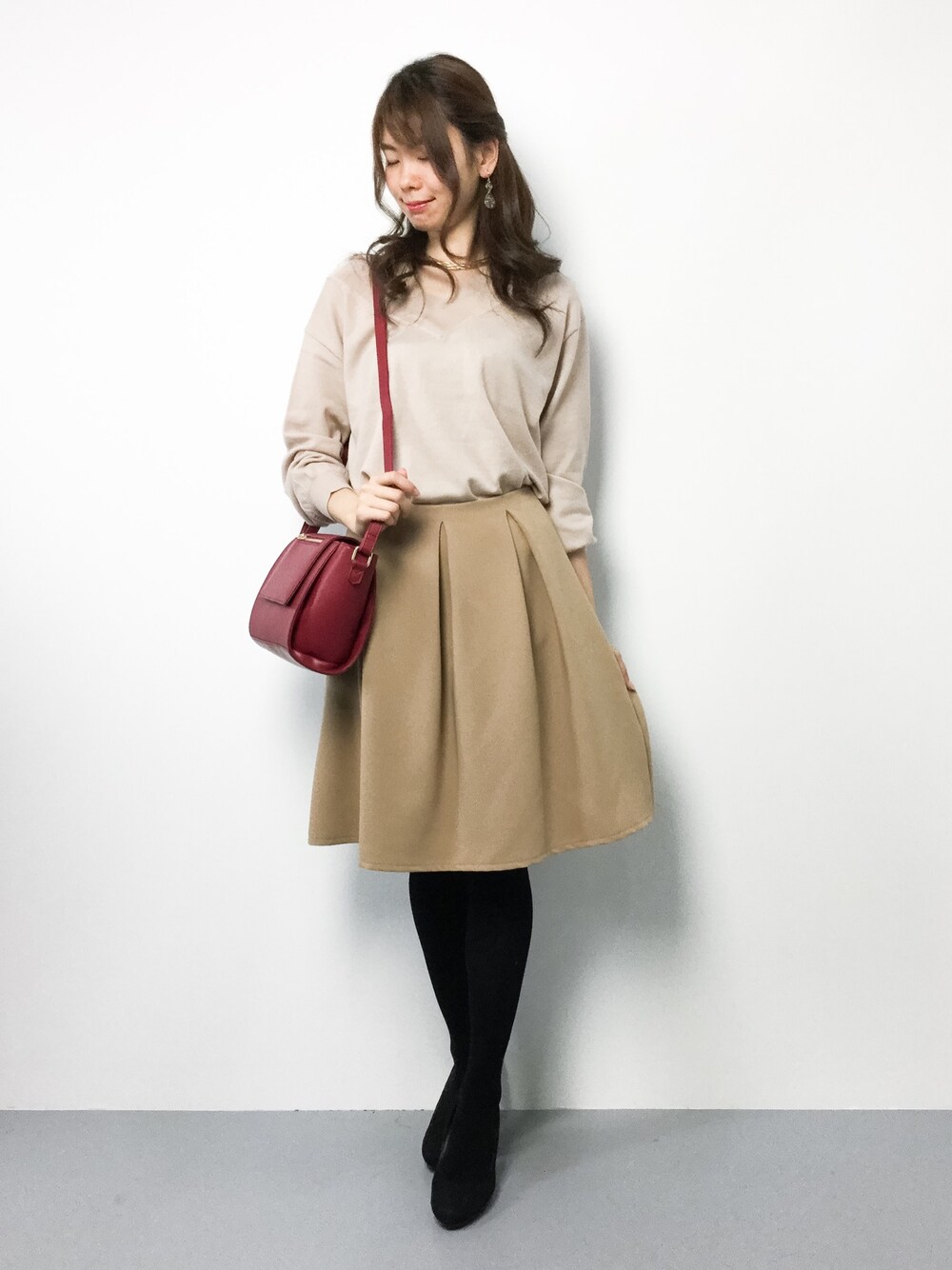 暖色系のきれいめコーデ♪ 薄手Vネックニットは着回しのきく優秀アイテムです^^