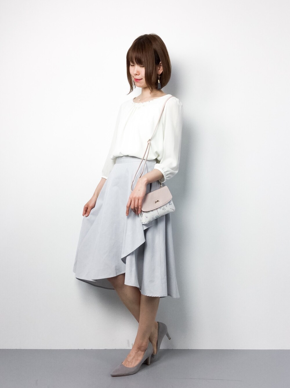 miyaseのシャツ/ブラウス「パールビジューシフォンブラウス◇通勤 OL 出張 オフィス ビジネス オンスタイル スーツインナー◇」を使ったコーディネート