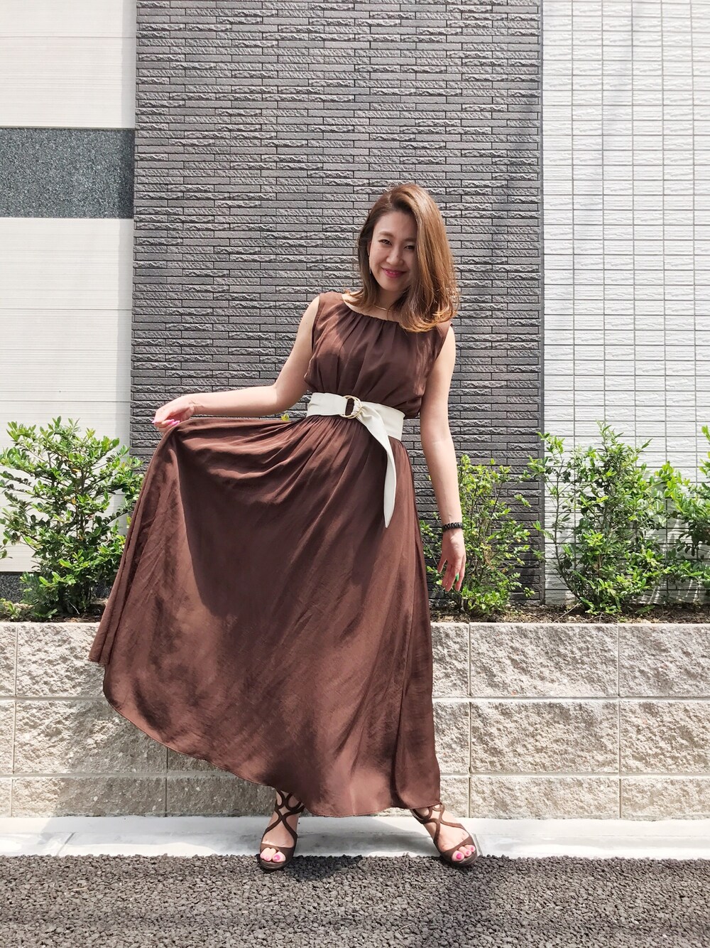 *** 大人気女神ワンピ♡ サンダルもブラウンで合わせて、サッシュベルトを目立たせました(^^)