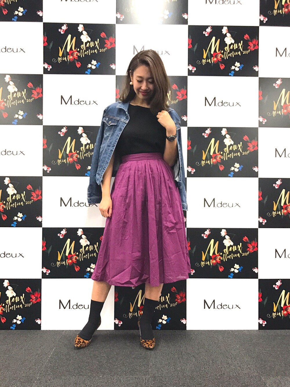*** 展示会1日目の通勤コーデ☺︎ フレアスカートをGジャンでカジュアルに!