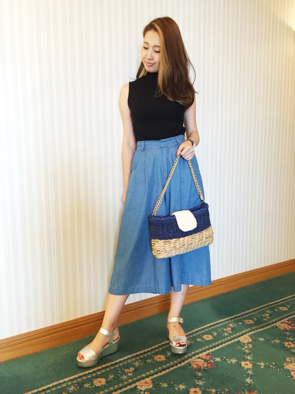 2015.07.10*** 合宿2日目コーデ☺︎ ここ何年かずーっと人気のボトルネック‼︎ 首があるのにノースリーブ♡ って言うバランスが好きです(^^) ウエスト位置高めのガウチョパンツで、脚長効果を‼︎