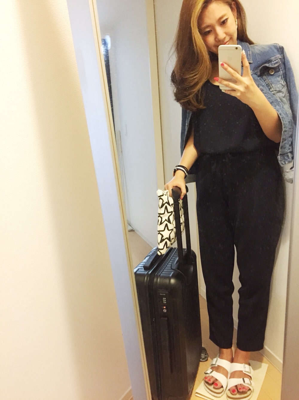 2015.07.11*** 土日は久々に実家へ帰省☺︎ "荷物にならない&楽チンな服" ってことで、オールインワンに決定‼︎ 休日はヒールあんまり履きません派‼︎
