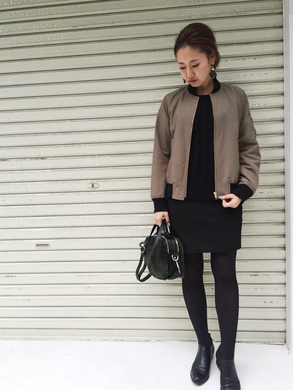 2015.11.23*** 連休3日目☺︎ 今日は友達と叙々苑ランチ⇨名駅ふらふら ⇨sora cafeで休憩⇨栄ふらふら 疲れて帰宅。 名古屋、あまり行くところありません(笑) コーデ。 久々にMA-1着たかったので、中はALLブラック‼︎ ちょっと黒すぎました。。。 しかもバッグも靴も昨日と同じだし。。。 歩く重視のコーデですね(´・ω・`)