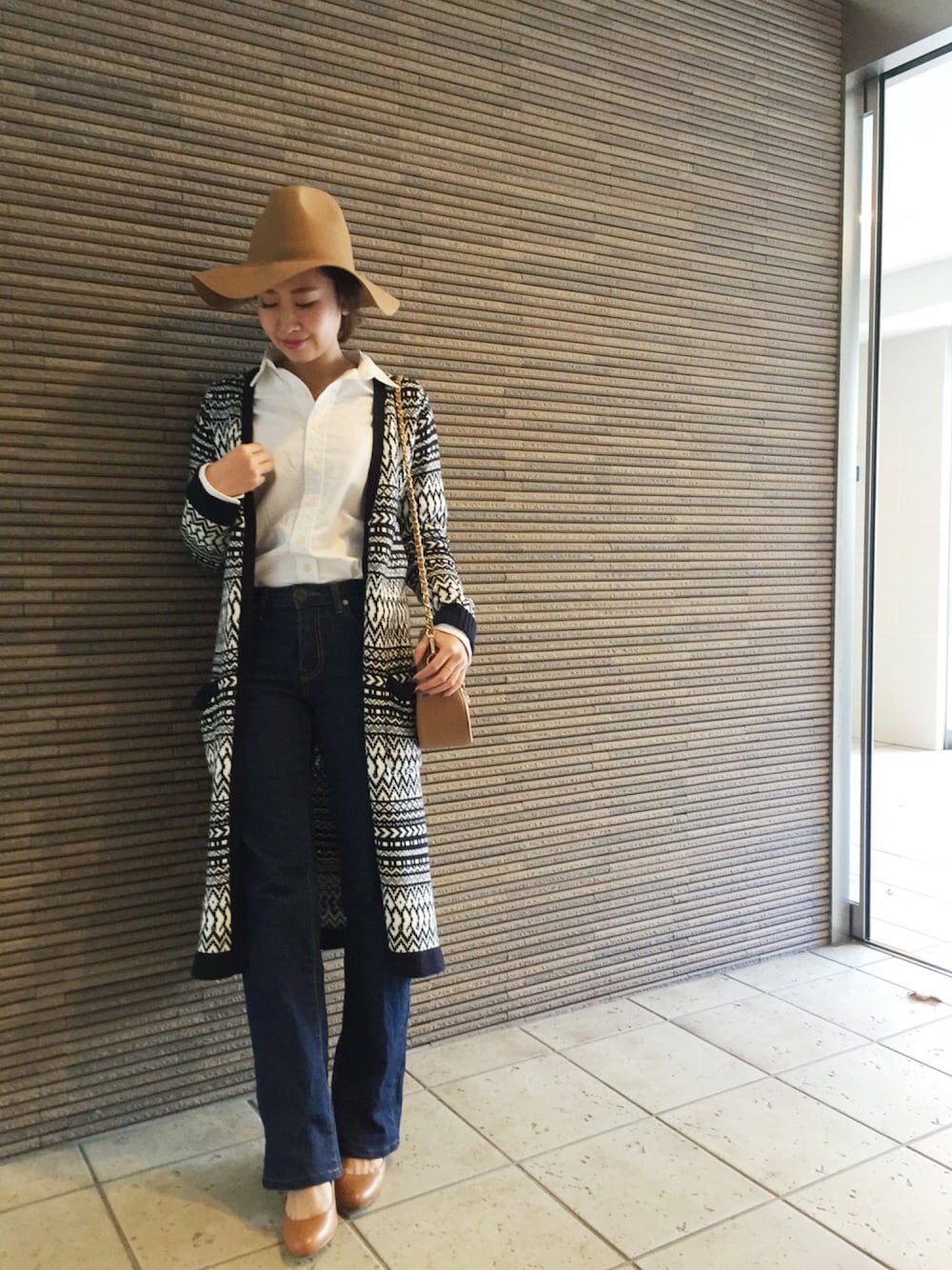 2015.12.30*** お正月休みコーデ② あんまり外を歩かない日は、コーディガンで充分‼︎ 白シャツ×デニムで、カジュアルになりすぎないように! 小物をキャメルにしてまとめました( ^ω^ ) 今年も残り2日ー!!!!