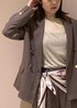 セットアップは秋らしいブラウンを選びました。 重たくならないよう、インナーはシアーのトップスを合わせています。 ポイントでスカーフを腰に巻きました!