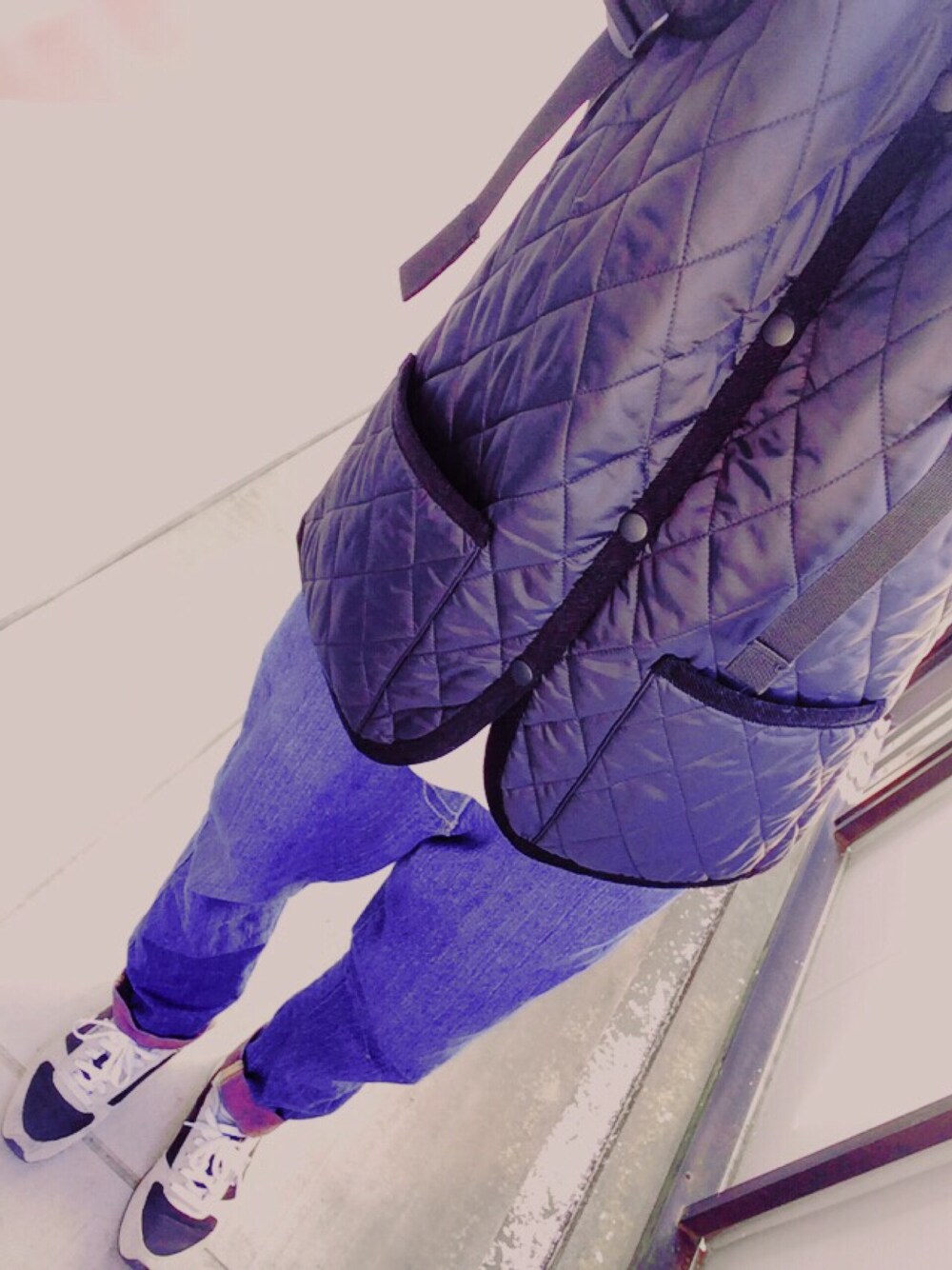 キルティングジャケットがとってもあったまります〜 風邪通さないのでポカポカです デニムはサルエルになっていてシルエットも可愛いですし、なにより楽でいいです! スニーカーはわりとリーボック買ってしまいます。いいんですよね、なんか。