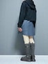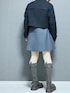 グレー系のブーツ、グレー系のワンピース、グレー系のダッフルコートを着用したレディースの秋コーディネートの3枚目の写真
