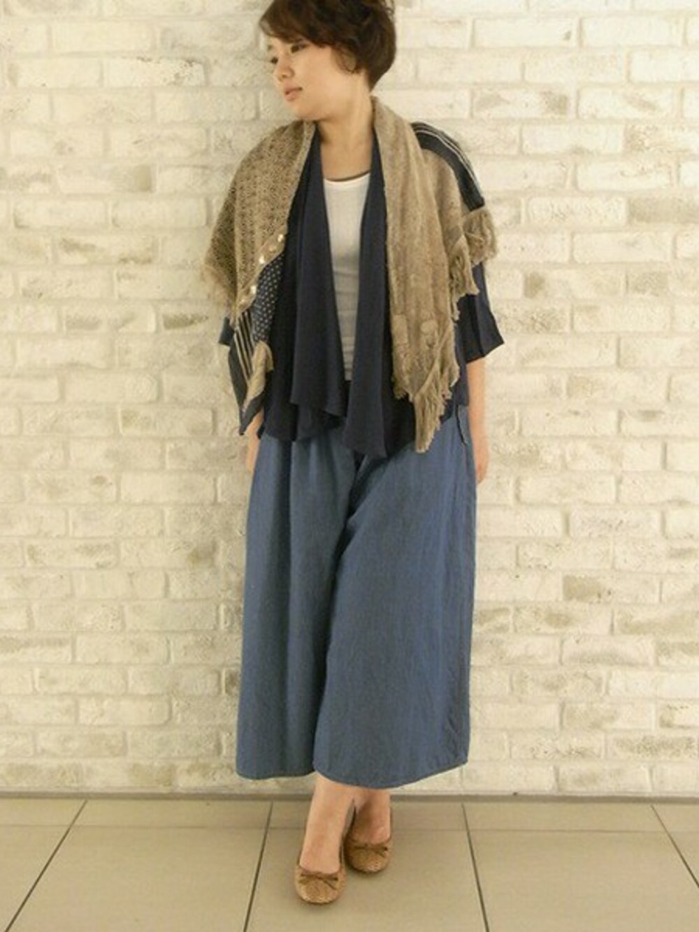 ギャザーワイドパンツでナチュラルスタイルに♪