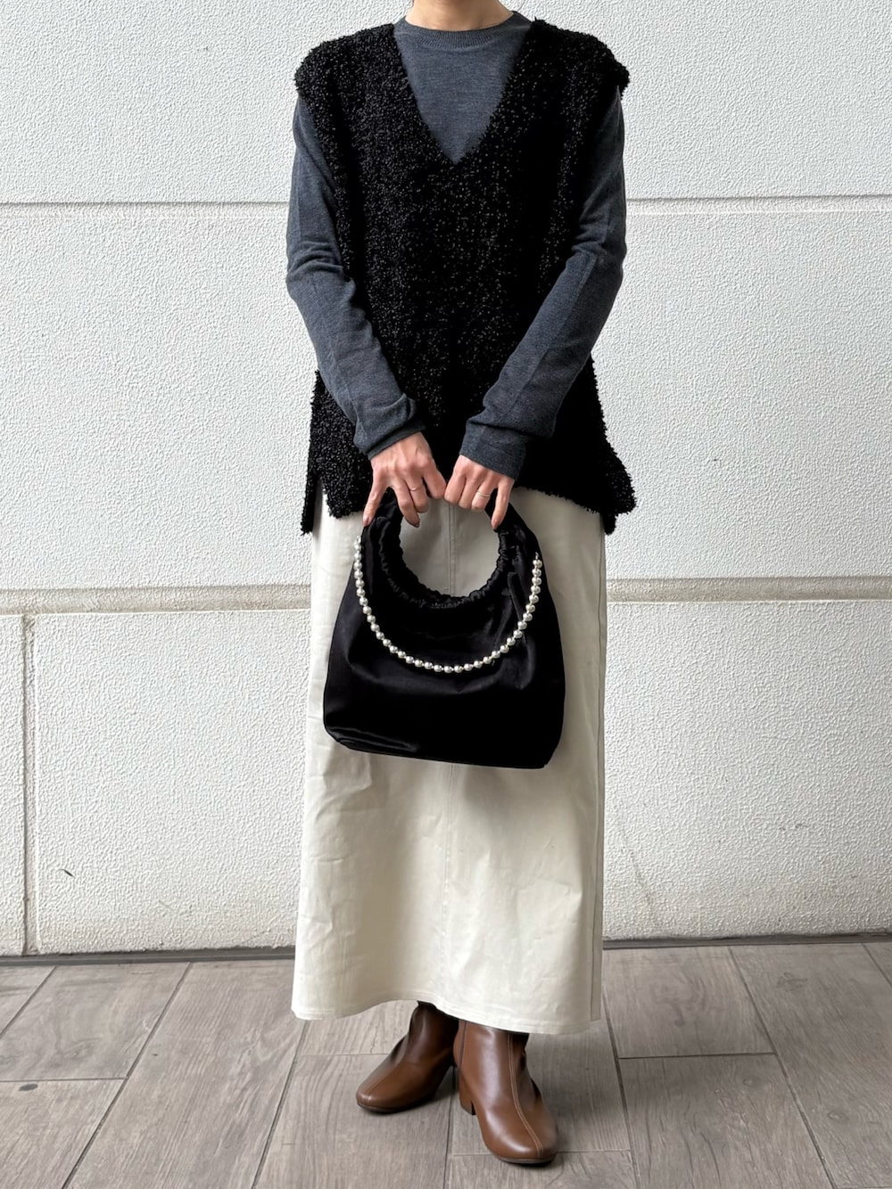 春のアイテムを使って、お出かけにぴったりなモノトーンコーデにしてみました🖤🤍
