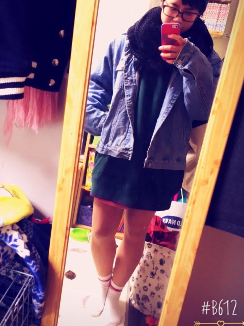 スウエット、デニムジャケット、シャツ 全て700円です٩( ᐛ )و ✩**・ 激安コーデ💫🙌
