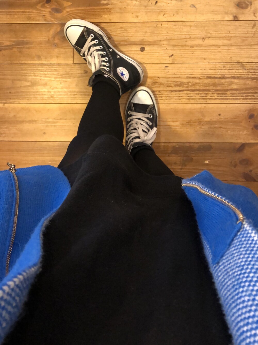 久々にブルーのコート ブルーのコート以外はオールブラック
