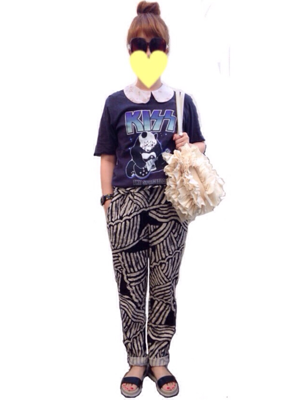 夏休みをのんびり満喫中 ムンクパンツ カジュアルに、だけどかわいらしく ちょっと大人な感じに合わせたかった 満足 ◯Tシャツ ◯ブラウス mother ◯パンツ mother ◯サンダル grove ◯バッグ mother ◯アクセサリー mother