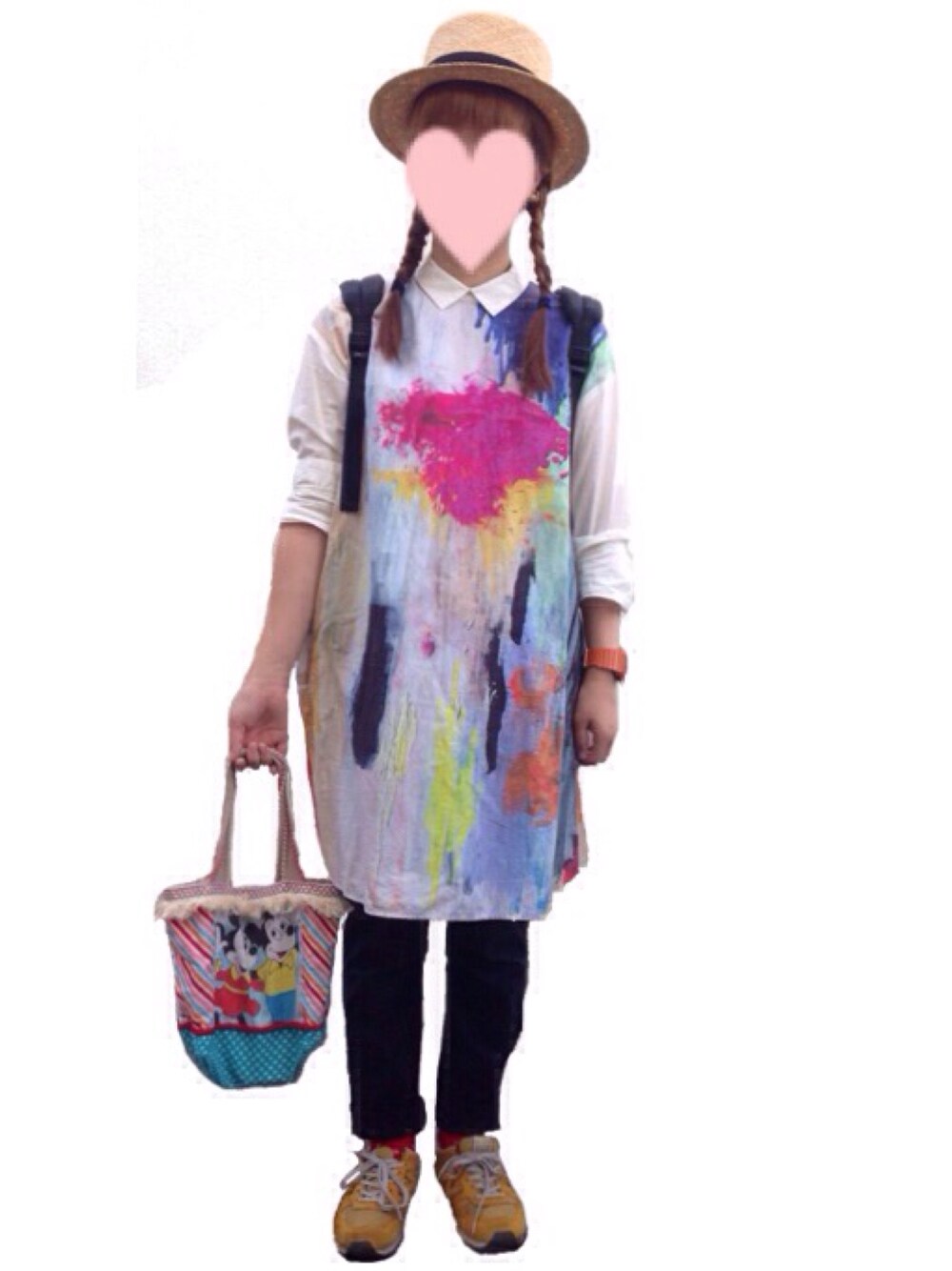 今日はかき氷を食べに行きました かき氷のシロップみたいなワンピース ◯ワンピース ◯パンツ ◯かんかん帽 ◯リュック GREGORY ◯トートバッグ ◯アクセサリー ◯時計 G-SHOCK × BEAMS ◯スニーカー