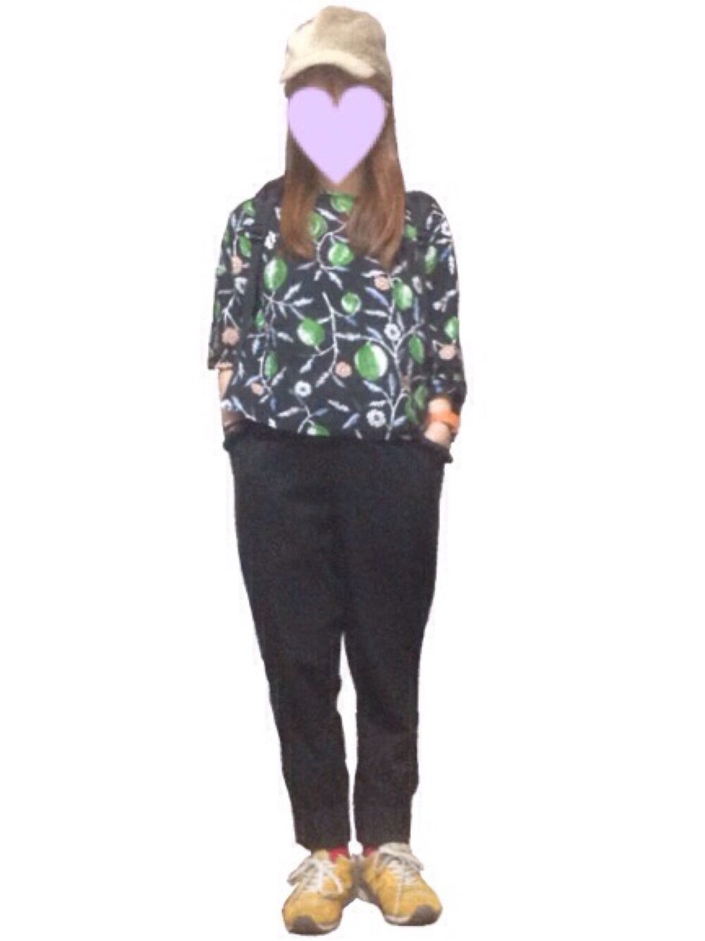 ライムーーー ◯ブラウス ◯パンツ ◯リュック GREGORY ◯帽子 ノーブランド ◯スニーカー