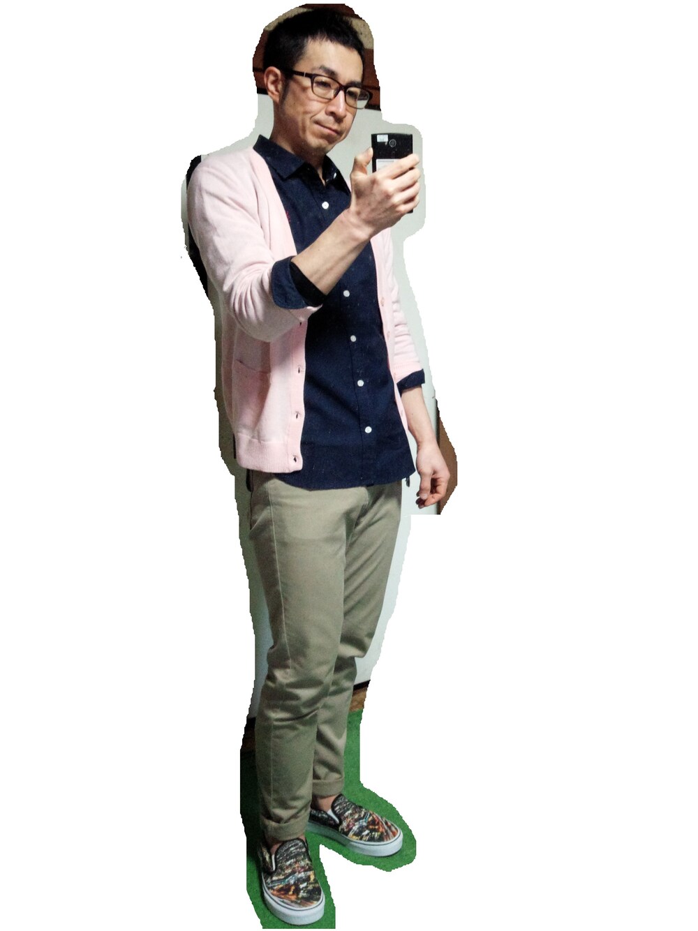 カーデで春コーデ。 メガネ:TOMMY HILFIGER カーデ:NO BLAND シャツ:GIORDANO パンツ:UNIQLO スリッポン:VANS