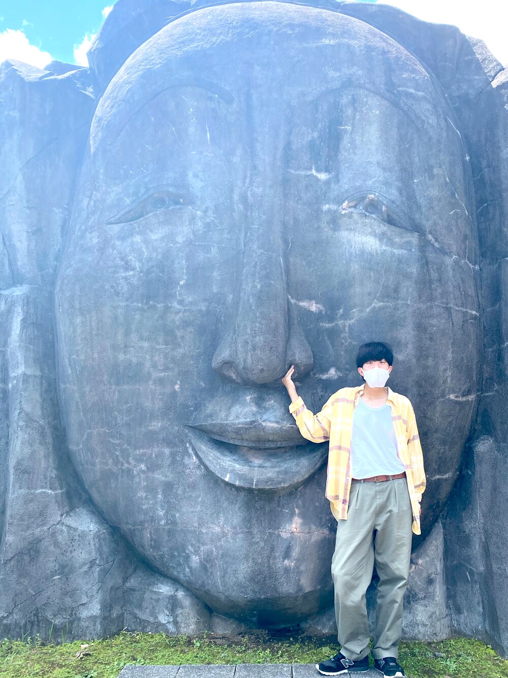 道の駅にあったお岩と。 外出るたび暑っつい。 でも構わず長袖。 どんどん涼ぅなれ。