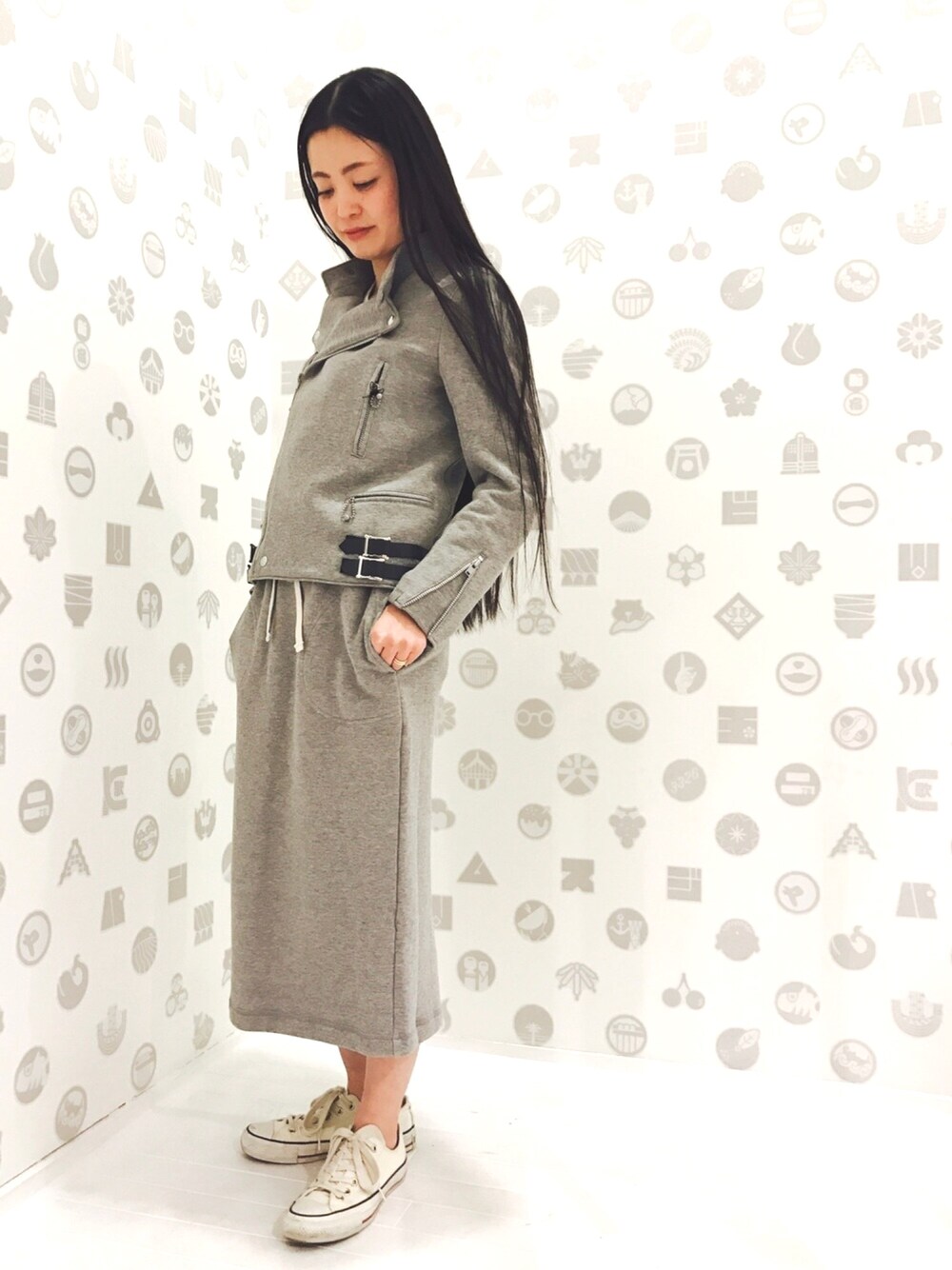 <SCYE(サイ)>×<LOOPWHEELER(ループウィラー)>のバイカーズジャケットをセットアップで着てみました🎌レザー物よりさらっと羽織れるので、様々なコーディネートに大活躍です◎