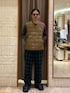 TAION別注シリーズのインナーダウンベスト。 ほどよく厚みで保温性があり、洗濯可能なのもポイント。 コートのインナーにもおすすめ。 インナーはゲバコのワッフルロンT。 ボトムスはグッドネスシリーズのブラックウォッチ柄。 ストレートで汎用性の高いシルエット。