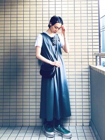 Marikoのワンピース「マーセライズコットンAラインロングワンピース(ノースリーブ)」を使ったコーディネート