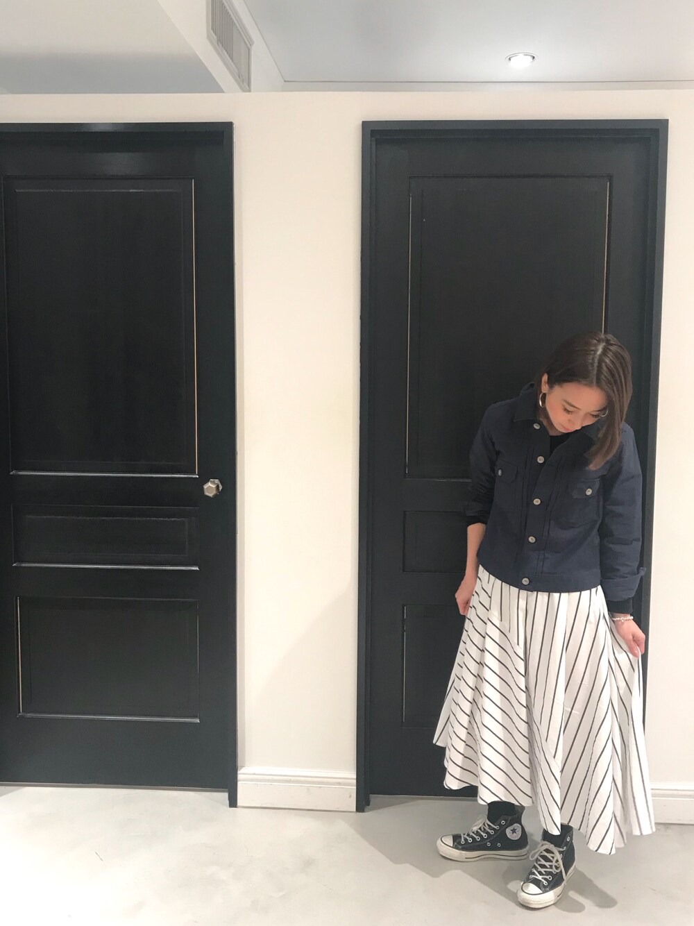 miyu___kiのスカート「STRIPE ASYMMETRY SKIRT/ストライプ フレアスカート」を使ったコーディネート