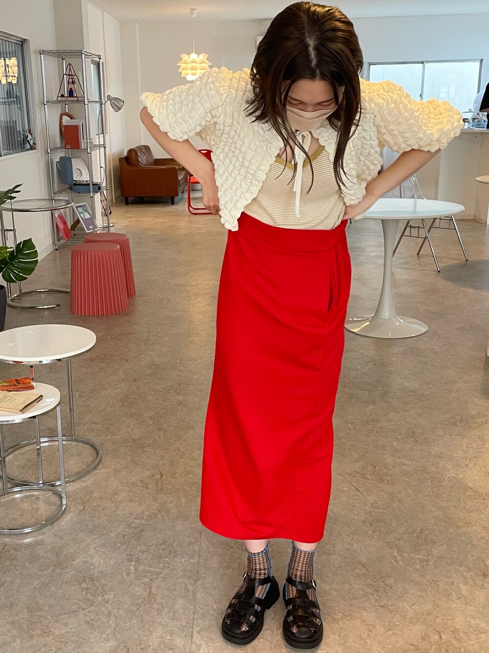 最近のお気に入りコーデ🍑 赤のタイトスカートが 夏っぽくてスキ🍨✨