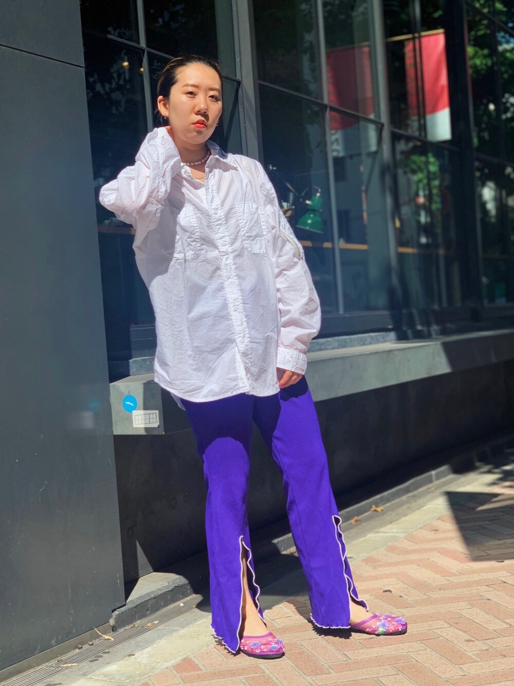 モードっぽく💜 彼シャツっぽいの、憧れです。笑