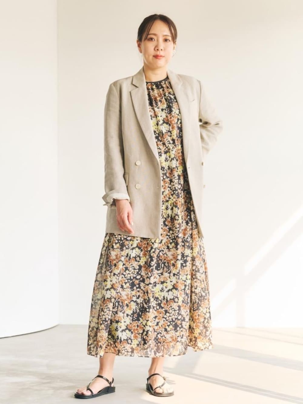 MIYUKI(ROPE' 天満屋岡山店)のテーラードジャケット「尾州リネンダブルブレストジャケット」を使ったコーディネート