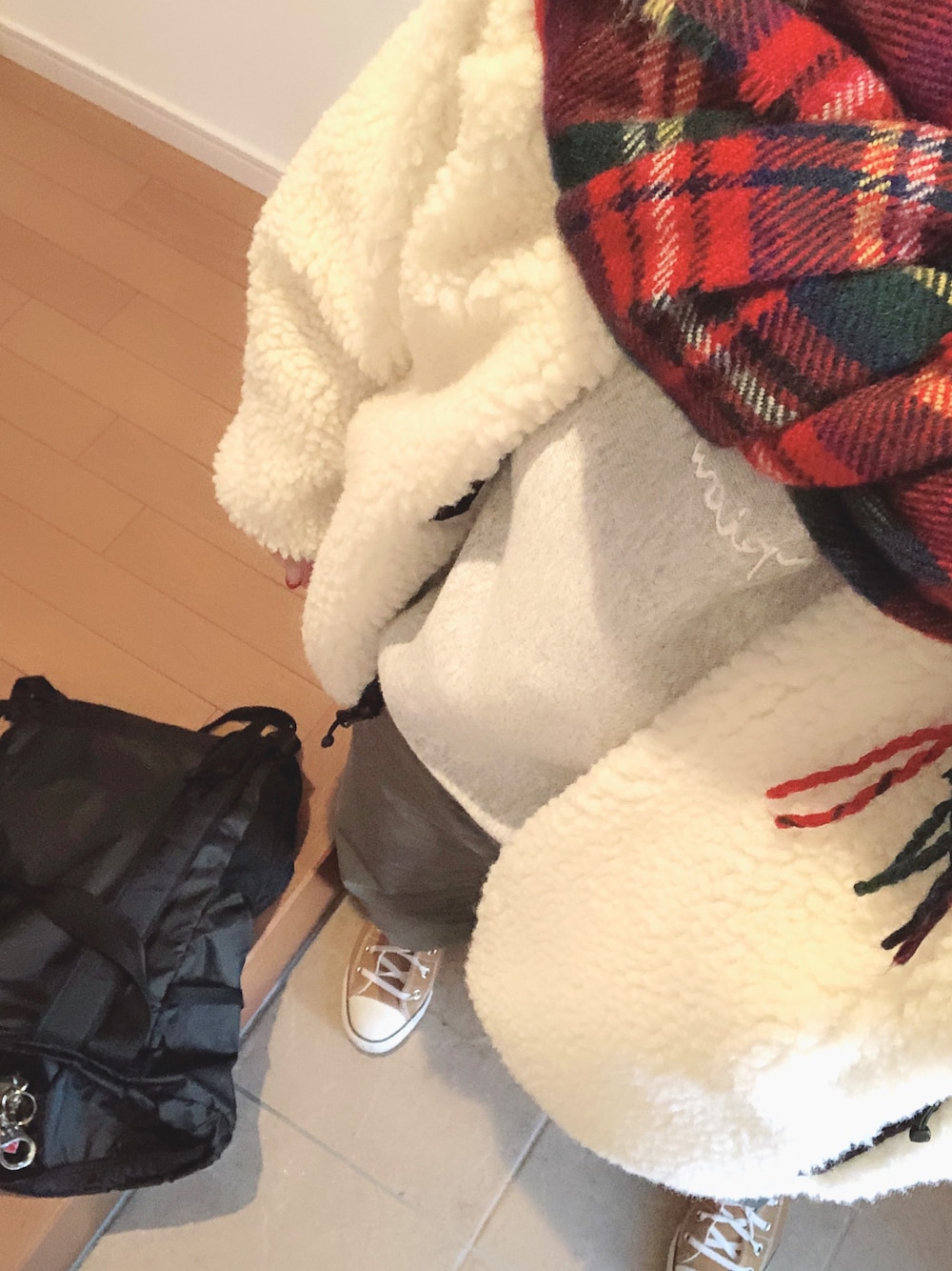 miyumarのマフラー「日本製チェックマフラー」を使ったコーディネート