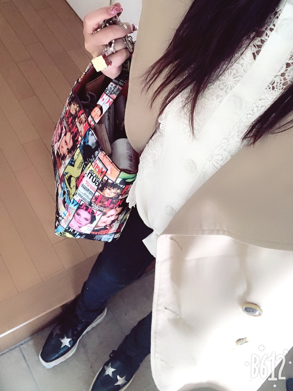 風が…寒い でも流行りの大きめ トレンチは 袖を捲らないと キマらない 手が凍りそ(≧з≦)プププ
