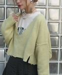 miyumarのニット/セーター「ダメージ加工深Vネックショートニット」を使ったコーディネート
