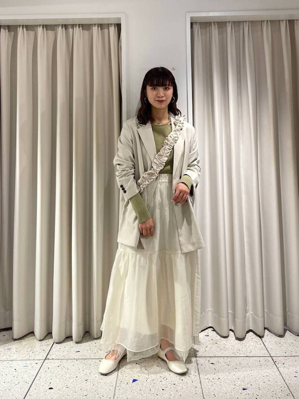 ご覧いただきありがとうございます☀️ ジャケット×ボリュームスカートで甘めカジュアルコーデを組んでみました✨ スカートは2way仕様で、反対側でも使えます✨