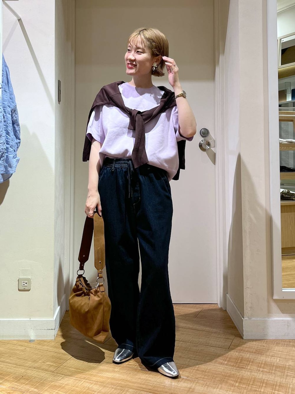 miyu(studioCLIP 千葉ニュータウン店)のデニムパンツ「【接触冷感】ひんやりイージーストレートデニム《CLIP denim》」を使ったコーディネート