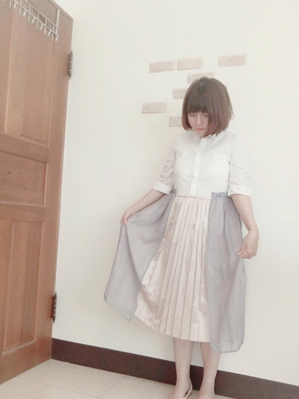 miyyaのシャツワンピース「シフォン重ねシャツワンピース」を使ったコーディネート