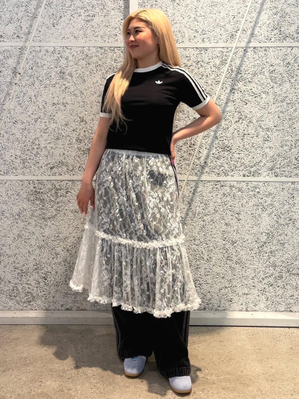 AM(アディダス オリジナルスショップ 心斎橋)のTシャツ/カットソー「adidas Originals ラッフル スリーストライプス 半袖Tシャツ/ アディダスオリジナルス adidas Originals」を使ったコーディネート