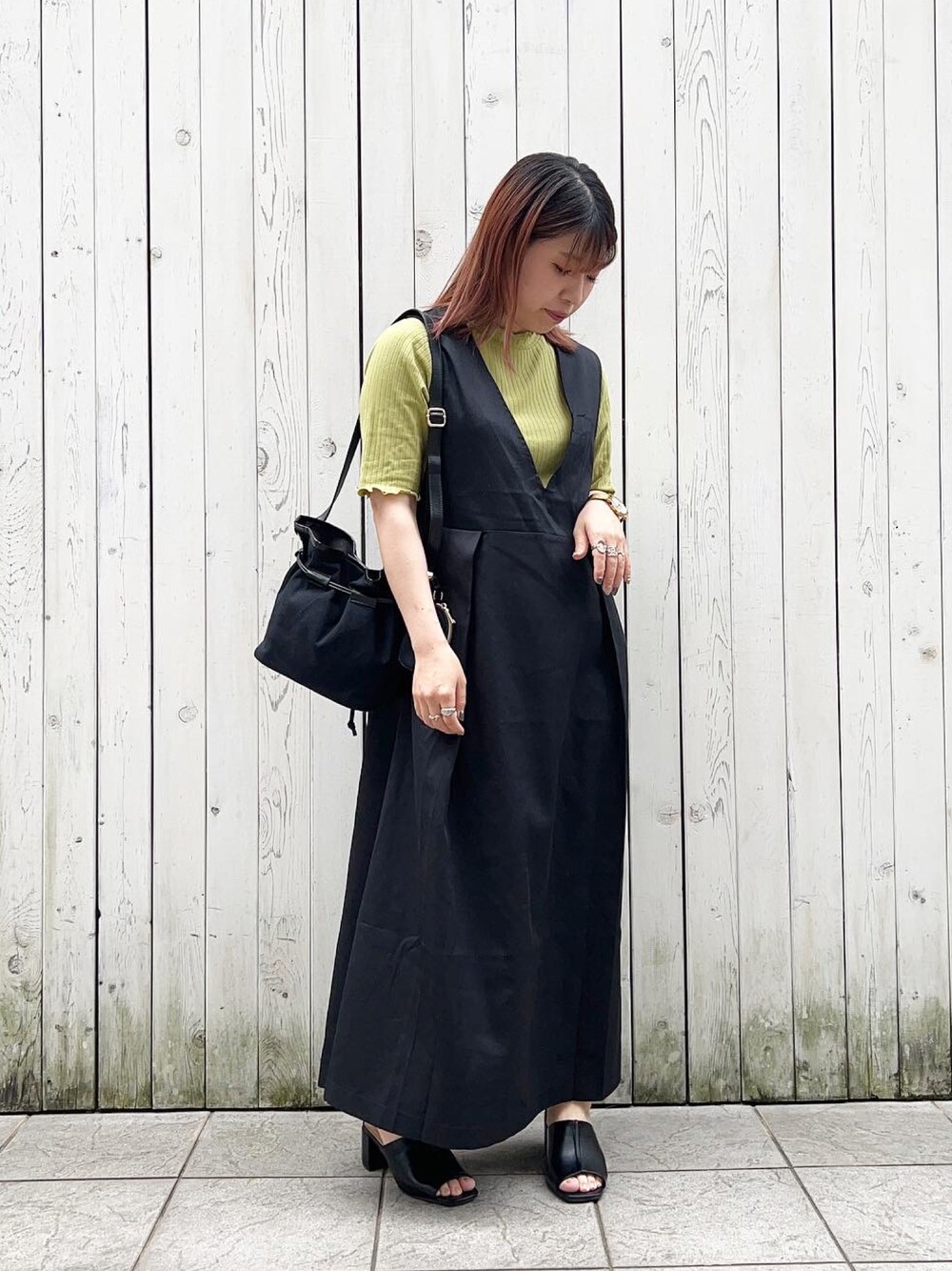 グリーンが目を引くメロウテレコカットソーはパンツでもスカートでもなんでも合わせられる万能アイテムです🌿 ジャンパースカートはしっかりした素材で、形があまり広がらないのでシルエットが綺麗です サンダルは普段23〜23.5cmでMサイズが丁度良かったです 少し小さめなので23.5cm以上の方はLが良いかもしれません