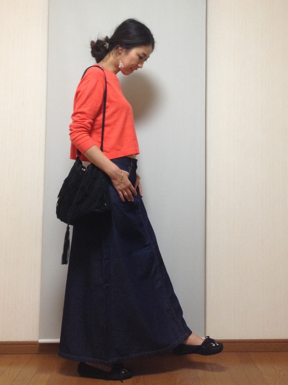 Raiのスカート「(GU)デニムマキシスカート」を使ったコーディネート