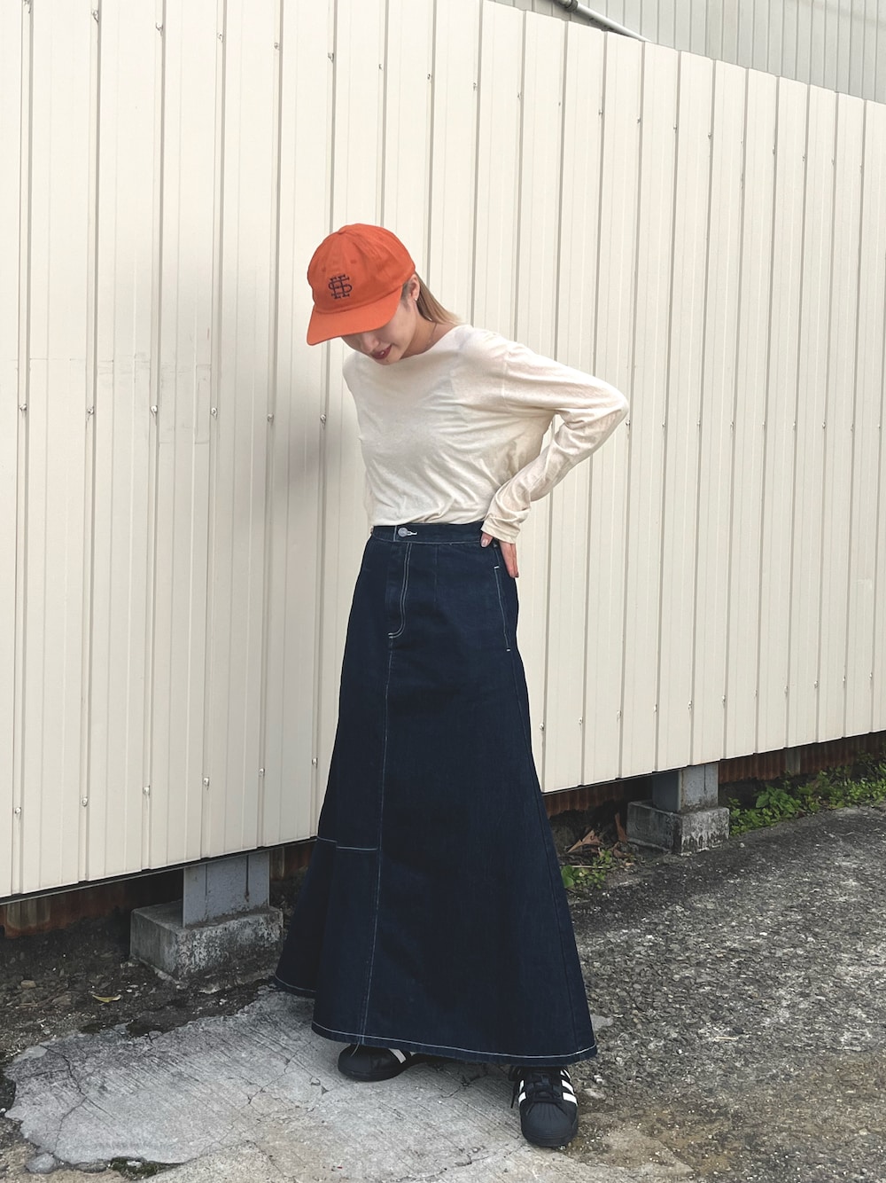 キャップだけど女性らしくが◎ オレンジのキャップがポイントにしたくて他を落ち着けたー!!!!^^
