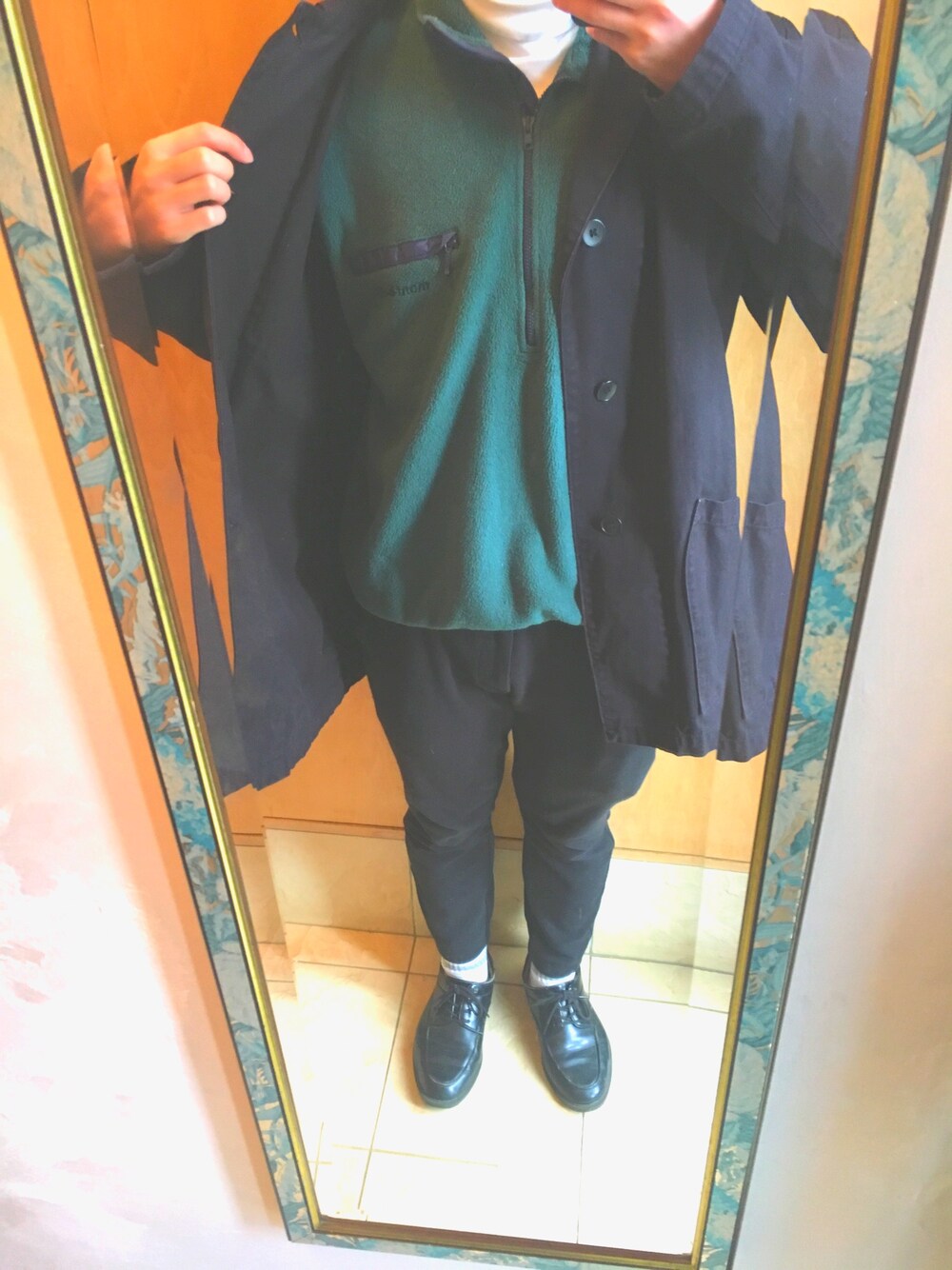 ポイントはフリース!!! 少し大きめゆったりサイズで、黒や紺などの暗い色ではなく、緑やオレンジ、赤などの、明るい色やパンチの効いた色が好ましいと思います( ͡° ͜ʖ ͡° )✋ 上にデニム生地のジャケットに、ジョガーパンツと、革靴を、黒系に統一し、メリハリをつける🙋