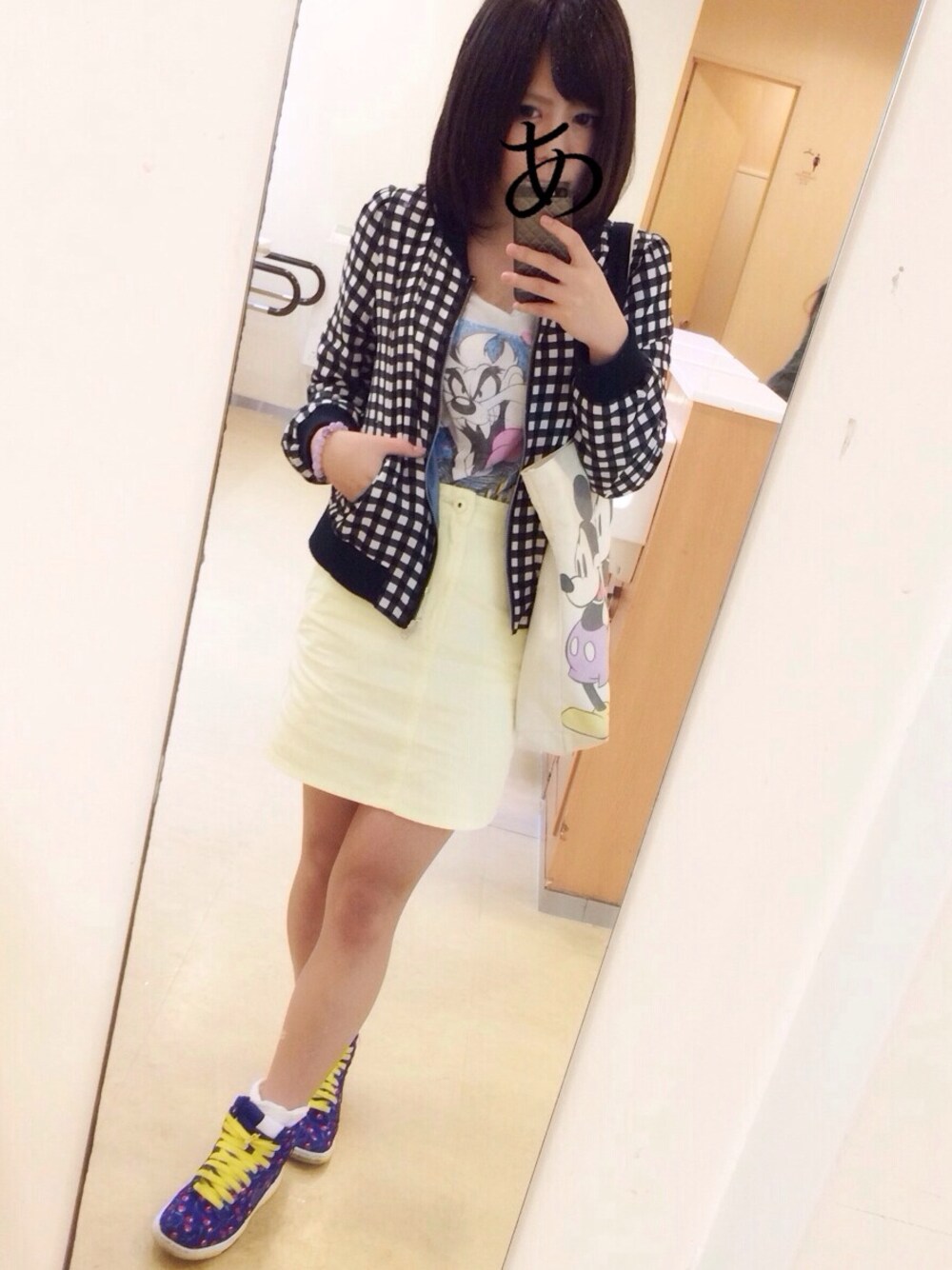 一昨日 黄色とチェックとさくらんぼとキャラクター どどん・*・:≡( ε:)