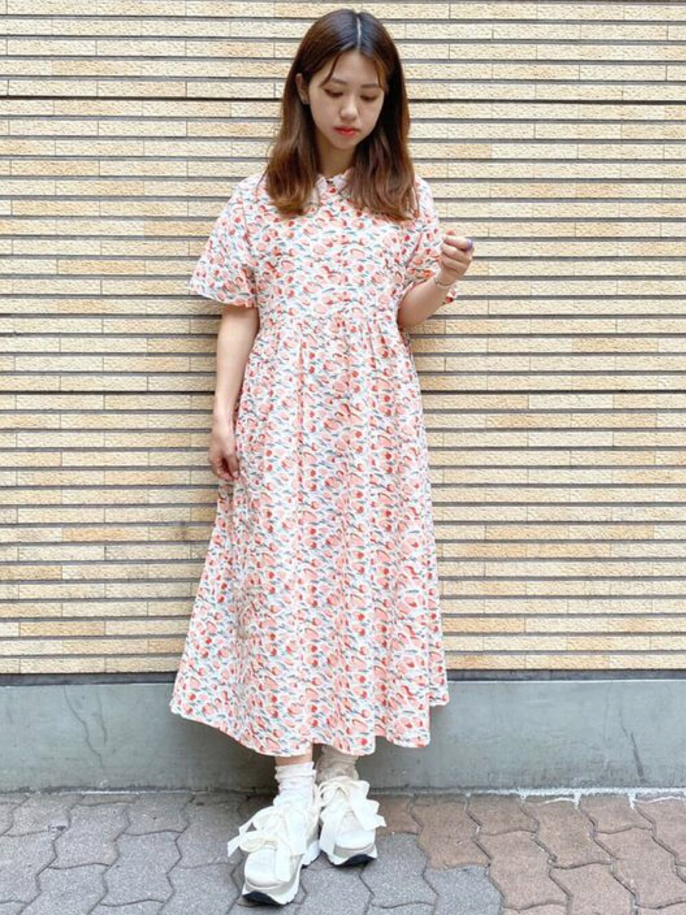 油絵で描いたようなtulip柄が印象的な、 愛らしい襟付きワンピース。 くしゅっとした素材感で柔らかい雰囲気になり、 一枚で主役になるワンピースです。 カジュアルにスニーカーと合わせた楽ちんコーデに。