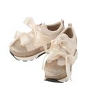 merry jennyのデニムはガーリーさんにもおすすめ! ボディラインの出ないふんわりシルエットと存在感のある大きな襟、 3つ並んだリボンで女の子らしいワンピースです♡ 1番上のボタン以外はスナップボタンなので着脱も楽ちんです。 バッグとシューズはアイボリーで揃えて、春らしいコーディネートにしました。 もこもこのミッフィーちゃんが付いたトートバッグは持ち手部分が長いので、 肩からかけることが出来使い勝手抜群。 A4もすっぽりの大容量なので通学バッグにもぴったりです。 サテンのリボンがついたスニーカーは厚底なので、低身長さんには欠かせないアイテムです。