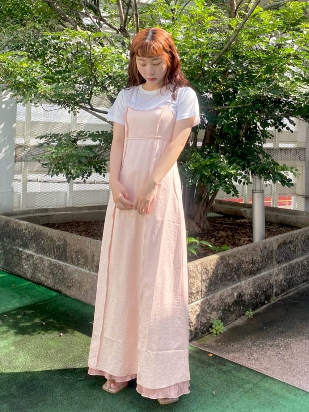タイトなシルエットのキャミワンピースは、 コンパクトサイズのトップスとの相性◎ 後ろのレースアップで体型に合わせて、 丈感やフィット感を調節することが出来ます。 紐の先端部分には蝶々のビーズが付いていたり、 裾からはちらっと裏地が覗いて見えたりと 隅々まで抜かりなく可愛いアイテムです。 Tシャツはシンプルなデザインで、 ボトムを選ばず1枚あると大活躍しますよ! Instagram @merryjenny_staff_koto