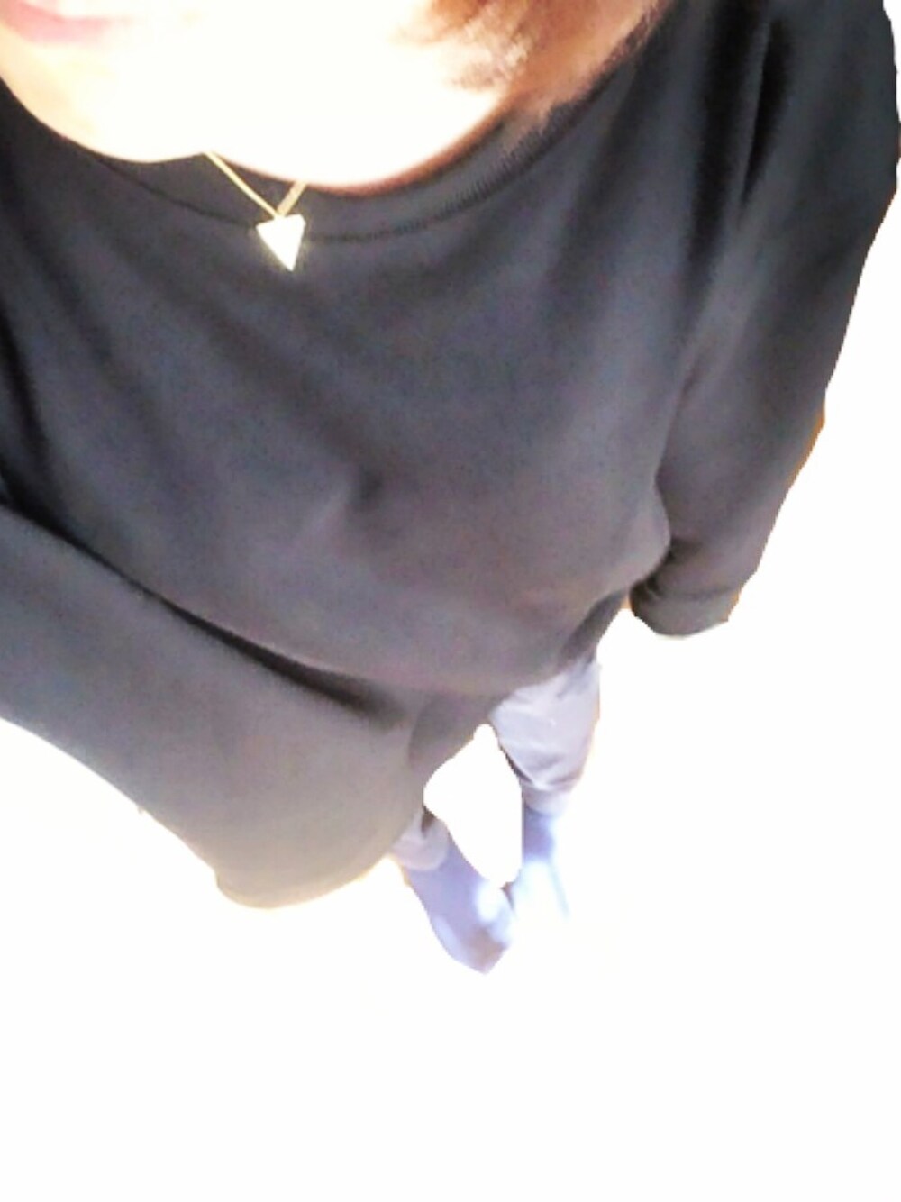 仕事の日の私服。 中が暖かく、Mサイズを 購入したのでワンピースとしても 着れるビックサイズです。 L.XLサイズもあったので 男性も着れますね^ ^ ネックレスはハンドメイドです。