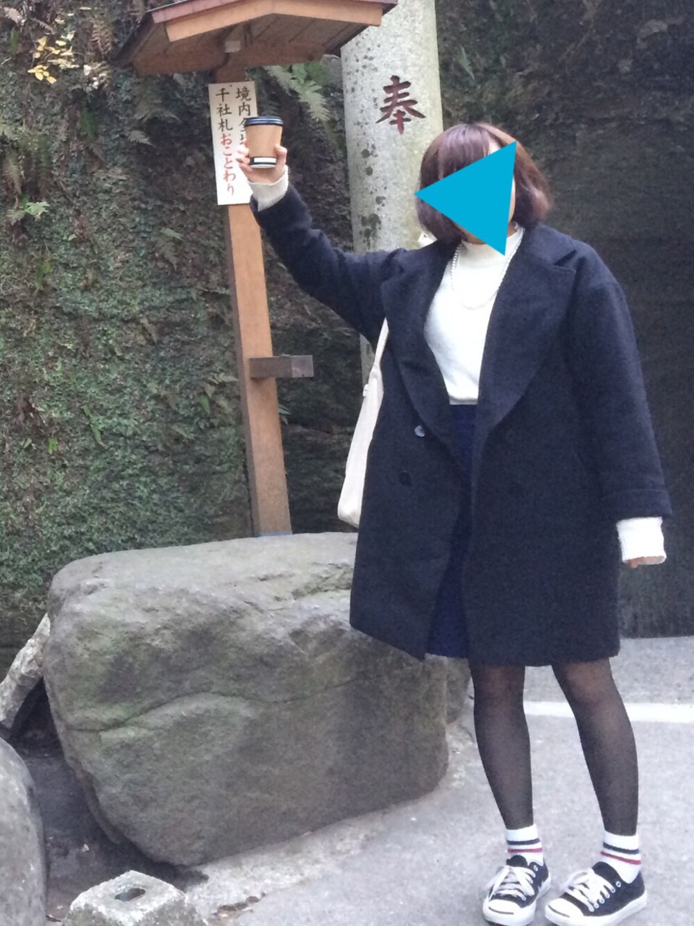先月、鎌倉に行きました。 白のハイネックニットは ヒートテック素材なので とても暖かく薄着でも使えます!! KBFの福袋のコートも 形が可愛くて一目惚れしました。
