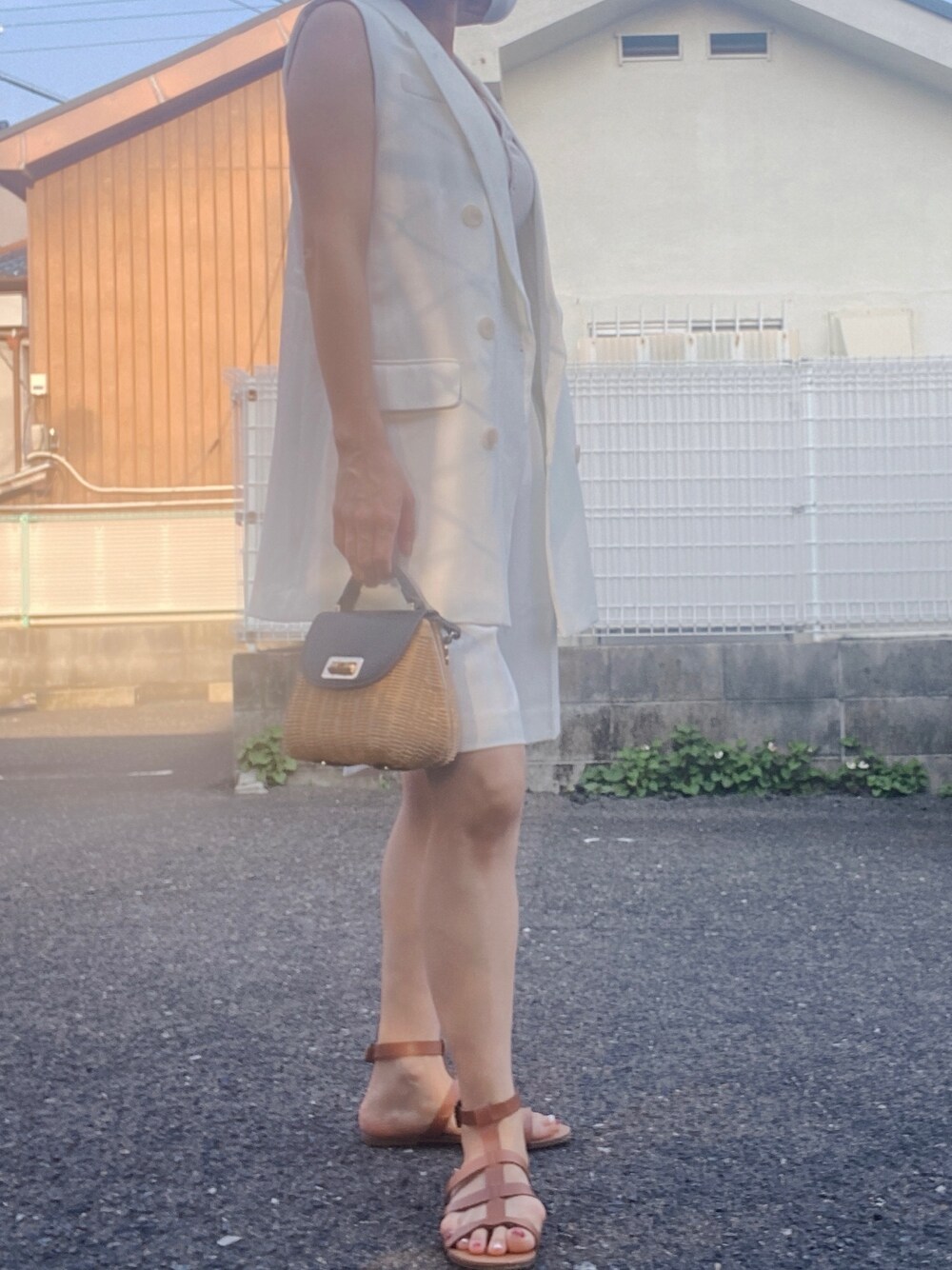 サンダル以外H&M 白のセットアップ初挑戦 インナーも色違いで買ったほどお気に入りの H&Mのリプタンク