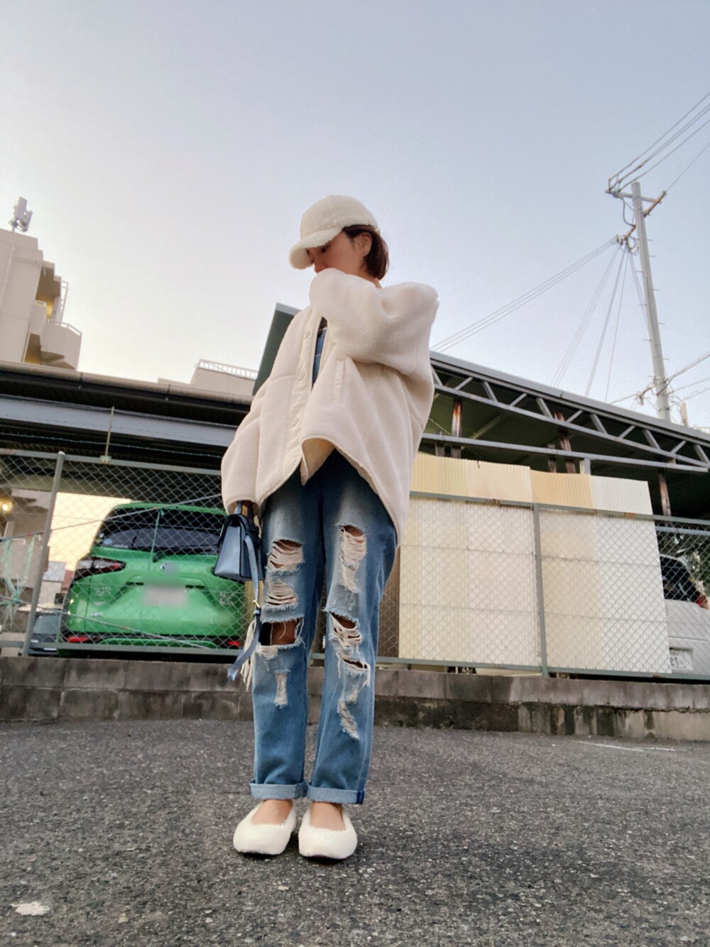 ウォーキング用に買ったモコモコアウター 着てみたらウォーキング用にはもったいないくらい可愛かったので普段使いに。 リバーシブルで裏側もかわいい