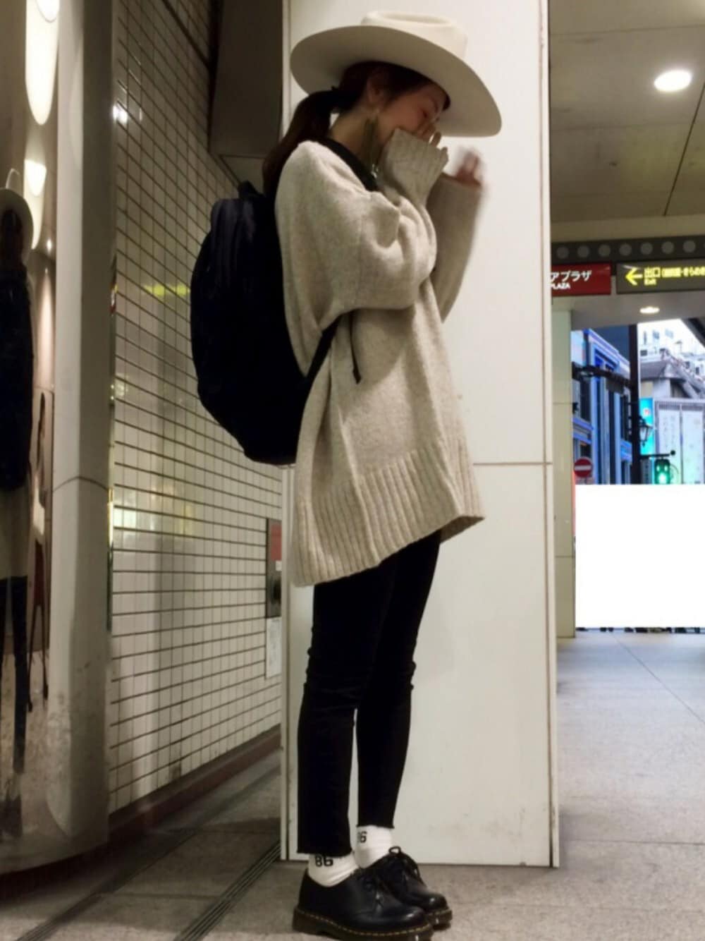 大好きなニットの季節が やってきたー♡ でも… 寒いの大キライ😭 ニット オーバーサイズで萌え袖❤️ 黒スキニーと… 定番のどしんぷるさん! 上下ZARAコーデ! YB氏の #オーバーサイズ週間♡