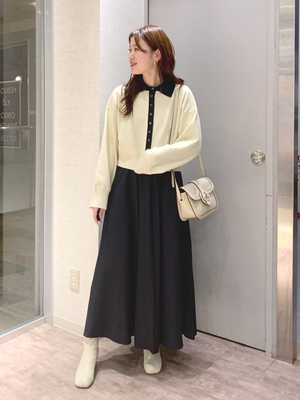 モノトーンで可愛らしく🖤 着丈短めのトップス×マキシスカートのバランスが◎