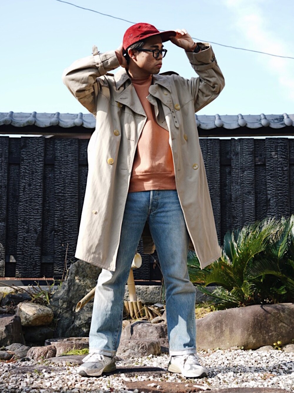 春っぽい装い。 秋感のあるカラーも入れてるけど、トレンチコートとデニムで春っぽくまとめて🤲 ありがちな合わせ方やけど、色味の入れ方が自分って感じ。